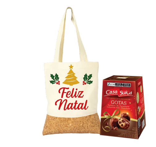 Surpreenda seus clientes com nosso Kit Sacola de Natal Personalizada! Inclui uma sacola eco e um delicioso Panettone com gotas de chocolate Casa Suiça. Personalização disponível com sua logo. Ideal para brindes corporativos.