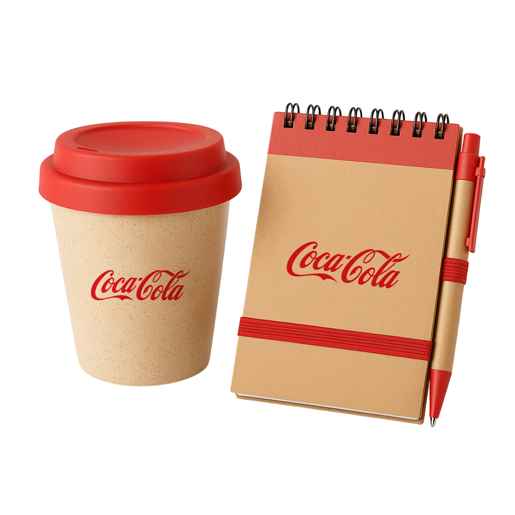 O Bloco de Anotações Ecológico com Caneta é produzido com materiais sustentáveis, oferecendo uma escrita confortável e uma apresentação elegante para anotações do dia a dia, reuniões e treinamentos. Já o Copo Fibra de Arroz 350ml é uma escolha inteligente para substituir descartáveis, reforçando práticas sustentáveis dentro da empresa e valorizando a experiência dos colaboradores.